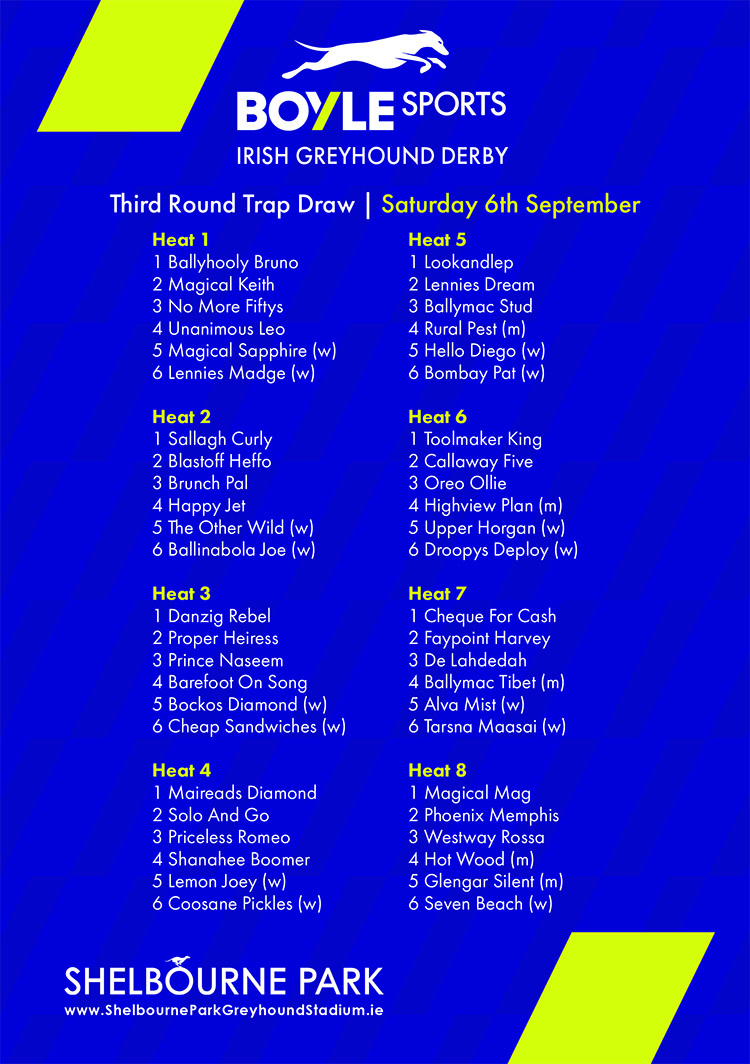BOYLE SPORTS IRISH GREYHOUND DERBY – OPENING ROUND DRAW