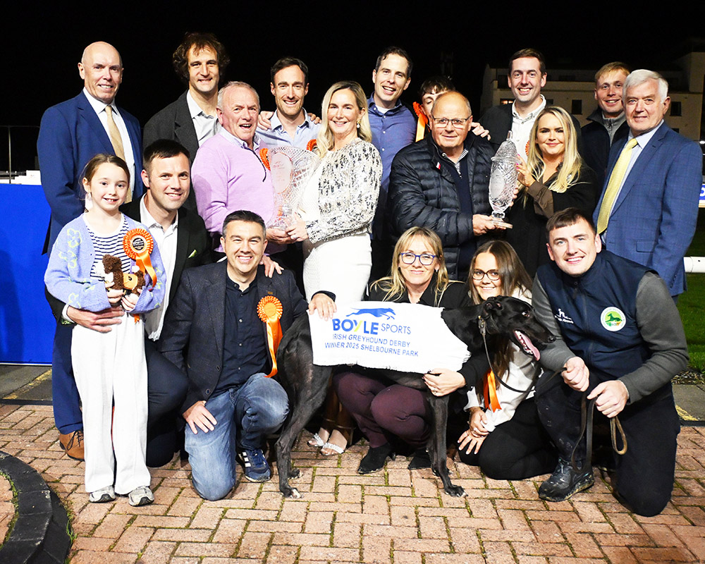 A brilliant and deserving winner of the BOYLE Sports Irish Greyhound Derby, he was greeted by his lucky owners the Bark Wahlberg Syndicate - a group of college friends with a few added into the mix.