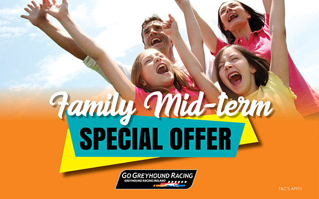 This fantastic Family Offer is available across Ireland this February Mid-term Break at one of the seven greyhound stadia listed below and includes: