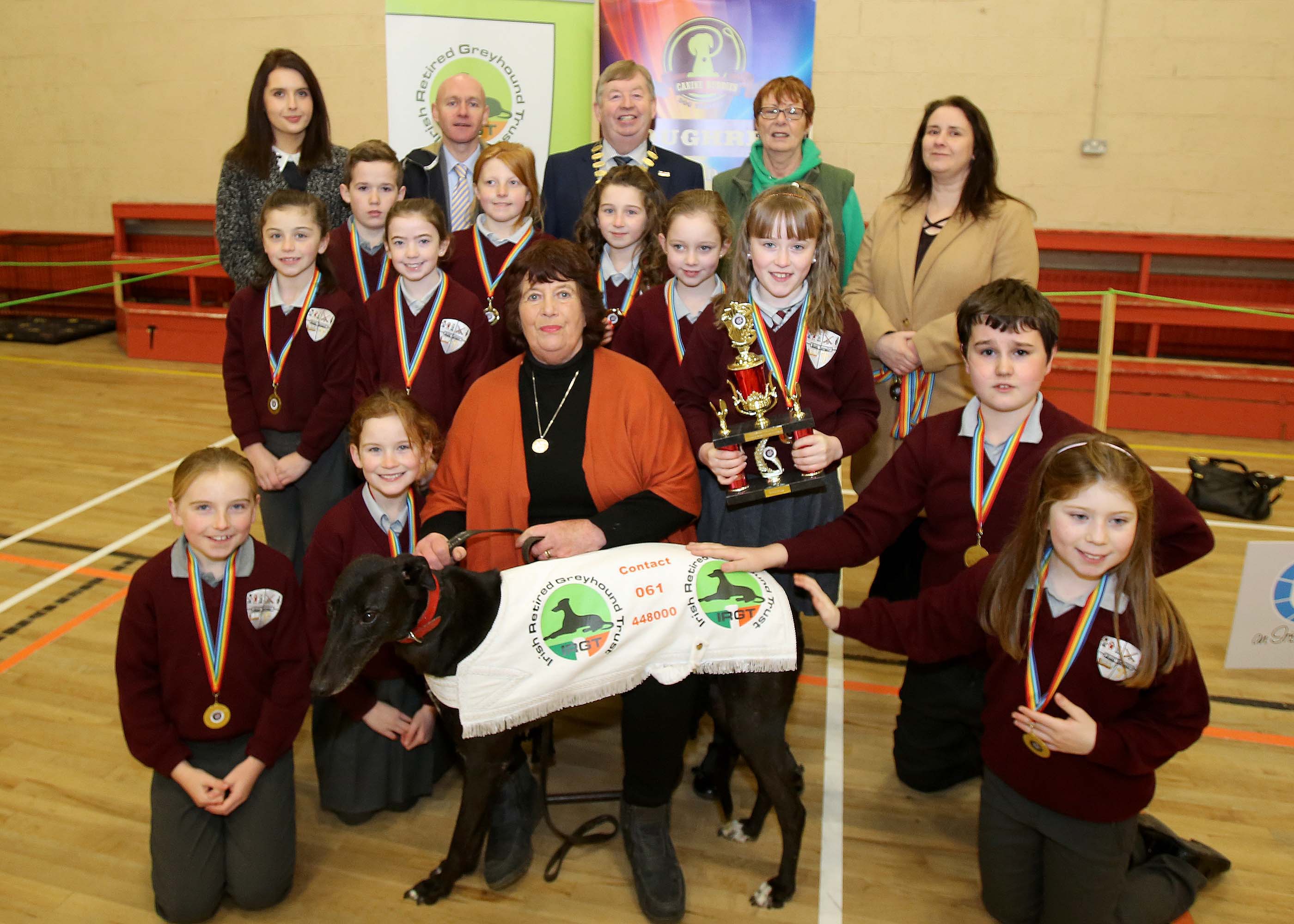 Congratulations to pupils of St. Feichins National School, Abbey, Loughrea, Co. Galway on winning the Canine Buddies Responsible Dog Ownership School Project “Junior Award” 2016 and pupils from Killimor National School, Killimor, Co. Galway on winning the Canine Buddies Responsible Dog Ownership School Project “Senior Award” for 2016. Awards Sponsored by the Irish Retired Greyhound Trust.