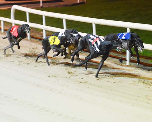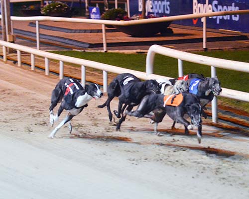 Hawkfield Abbie took the opening heat, showing fine pace to pick up the long-time leader and hot favourite Tribal Syd.