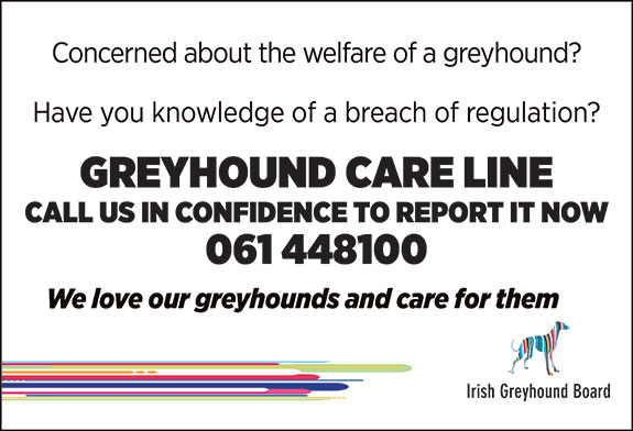 The Greyhound Care Line, on 061 448100, will be available 24/7 along with a new email address, confidential@grireland.ie.